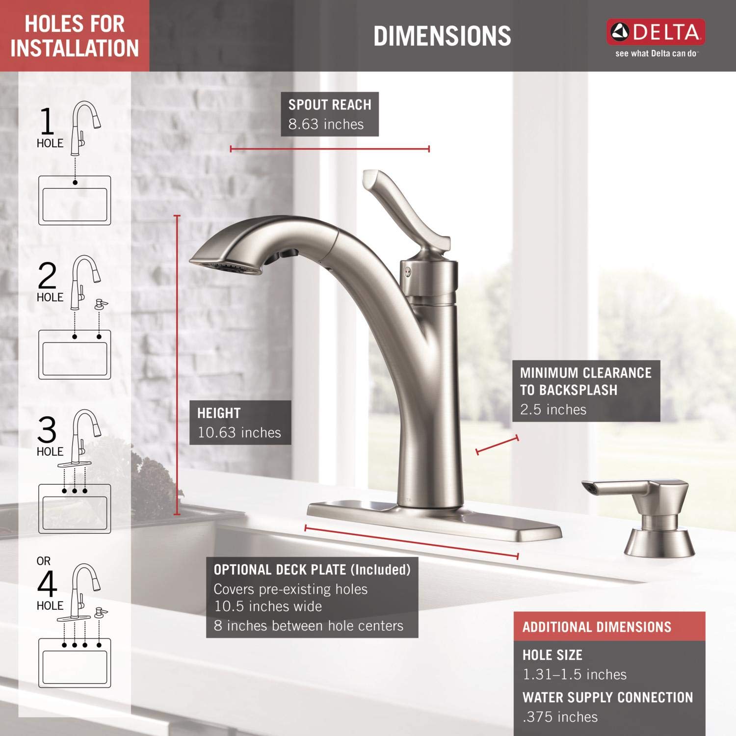 Delta Foundry Single-Handle Pull-Down Sprayer Kitchen ... from images.homedepot-static.com Shop wayfair for all the best soap dispenser included kitchen faucets. This ergonometric pull down spray faucet comes with regular stream and spray modes and robust solid brass construction for high stability and durability. Delta linden collection venetian bronze finish single handle water efficient pull out kitchen sink faucet and soap dispenser package d061cr $467.18 $718.74. Stream or spray with a single touch. Shop for faucet soap dispenser online at target. Get free shipping on qualified soap dispenser pull down faucets or buy online pick up in store today in the kitchen department. Solid brass construction and corrosion resistant finish on the faucet and included soap dispenser ensure durability. 14 types of kitchen faucets you should do you need space to install extra sink accessories like side sprayers and soap dispensers?